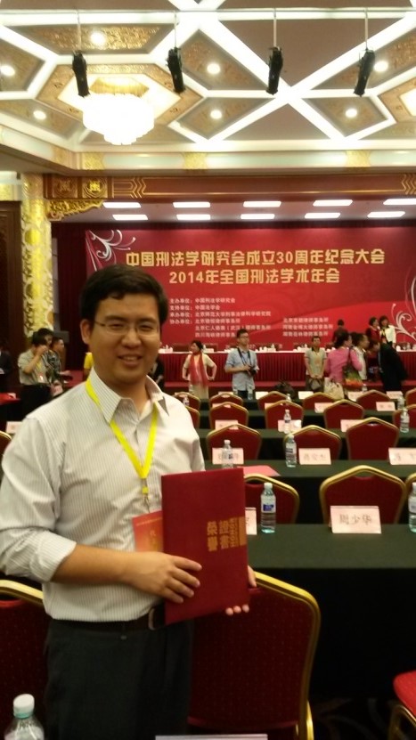 9月27日,由中国刑法学研究会主办的“中国刑法学研究会成立30周年纪念大会暨2014年全国刑法学术年会”在京举行。中共中央纪律检查委员会副书记、中国刑法学研究会副会长张军、中共中央政法委副秘书长姜伟、最高人民法院副院长李少平、全国人大法律委员会主任委员胡康生、全国人大常委会法工委副主任朗胜、中国法学会副会长张文显等来自全国人大常委会、中共中央纪律检查委员会、中央政法委员会、最高人民法院、最高人民检察院、司法部、安全部、中国法学会的有关领导及刑法学者专家400余人出席此次盛会。在此次学术年会召开之际,中国刑法学研究会举行第二届“全国刑法学优秀博士学位论文奖”颁奖仪式。由我院博士生导师郭自力教授担任指导老师,并由刘跃挺博士撰写的博士学位论文《医疗过失犯罪中的信赖原则——理论及其适用问题研究》荣获第二届“全国刑法学优秀博士学位论文奖”二等奖,郭自力教授作为指导老师,被授予全国刑法学优秀博士学位论文指导教师奖。