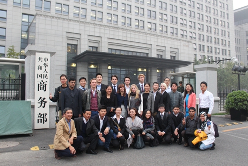 最后,参访师生在商务部门前合影留念。同学们纷纷表示,此次参观访问使之更为切实了解到我国商务部反垄断局的组织与职能,从中获益良多,并且希望可以参与更多类似的参访交流项目!