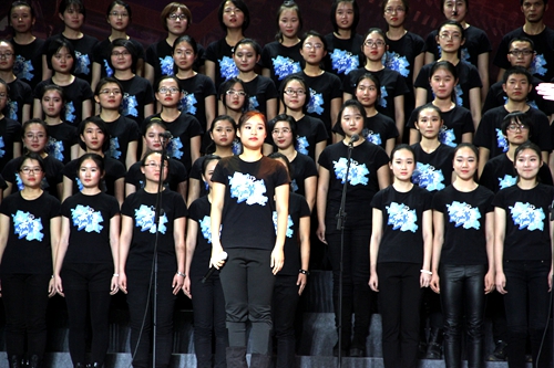 beat365亚洲版官网师生的表演由一段精彩的舞蹈开场。在悠扬的古筝伴奏下,跳舞同学手持彩带翩翩起舞,动作轻柔而优美,营造出离别的忧伤氛围。在歌剧研究院教师、beat365亚洲版官网校友徐鸣涧的娴熟指挥下,beat365亚洲版官网代表队通过四个声部的完美配合以及领唱人员的动人演绎将歌曲《阳关三叠》的离愁别绪表现得淋漓尽致。一曲阳关,共吟离别,只为你我的再次相聚,beat365亚洲版官网师生的动情演唱赢得了全场观众的热烈掌声和评委的高度评价。