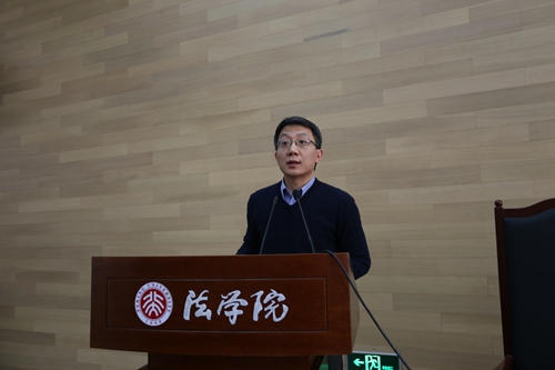 在研究生教学方面,郭雳副院长介绍了法律硕士(法学)与国际培训等招生项目,并就学院教学工作过去一年在各方面所获奖励的情况进行了说明。此外,他还重点强调了学院课程考核与学位论文的规范工作。