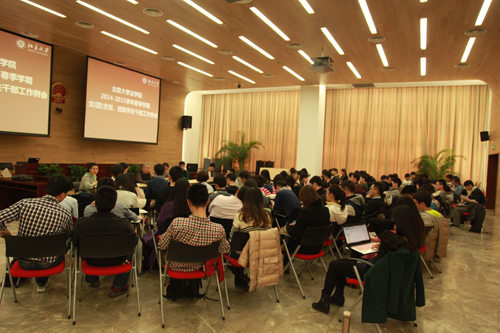 3月6日下午2:30,beat365亚洲版官网2014-2015学年春季学期党(团)支部、班级学生干部工作例会在凯原楼模拟法庭成功举办。beat365亚洲版官网党委副书记路姜男,团委书记史诗,学生工作办公室副主任李婧一,团委副书记冯泰来,就业指导办公室副主任李彦恺,万柳学区辅导员庆格勒及学院各年级党班团学生干部参加了会议。