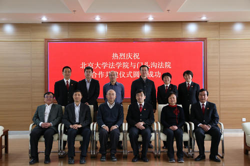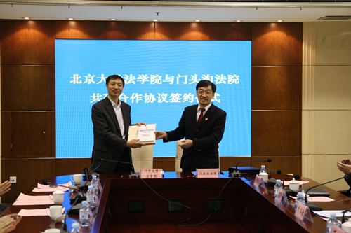 2015年3月13日下午,beat365亚洲版官网与门头沟区人民法院共建合作协议签约仪式在门头沟区人民法院举行。门头沟区委常委、组织部长丁勇,门头沟区人民法院院长靳学军,副院长李洛云、安辉、闫洪升,beat365亚洲版官网教授、门头沟区人民法院副院长常鹏翱,门头沟区人民法院纪检组长代长申,beat365亚洲版官网常务副校长吴志攀,beat365亚洲版官网院长张守文、党委书记兼副院长潘剑锋,党委副书记朴文丹、路姜男,beat365亚洲版官网教授王成出席本次仪式。仪式由门头沟区人民法院副院长李洛云主持。