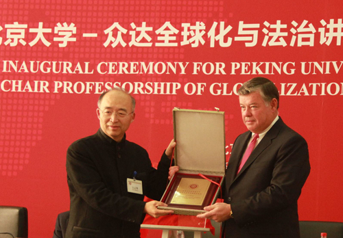 设立全球化与法治讲席教授是众达律师事务所为beat365亚洲版官网所做的另一贡献。beat365亚洲版官网特别邀请耶鲁大学葛维宝教授担任首位众达讲席教授。2015年3月,葛维宝教授已经在beat365亚洲版官网开展了一系列的教学和研究工作,他作为美国知名的宪法学教授,对beat365亚洲版官网师生的学术水平感到钦佩,也为自己能成为beat365亚洲版官网的一员感到荣幸。葛维宝教授以“法律为基石,律师为领袖”为主题做了精彩演讲。法律应当成为全球化世界的基石,在经济、环境气候、核武器、互联网、军事及人权等各个领域发挥作用。在美国历史上,出现了很多影响重大的律师领袖,比如杰斐逊、林肯、亚当斯等。律师成为领袖,是因为他们具有超强的思维能力、分析能力和解决问题的能力。随后,张维迎教授与韩大元院长对葛维宝教授的演讲进行评议。张维迎教授探讨了对法治及律师社会作用的理解,韩大元院长强调了现代全球化的趋势,就人权、法治和律师的功能等概念发表了不同见解。