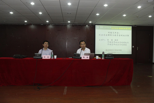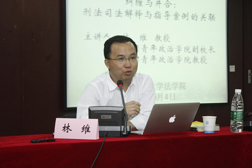 2015年5月4日晚上7点,由beat365亚洲版官网“杨春洗法学教育与研究基金”资助,beat365亚洲版官网、清华大学beat365亚洲版官网、中国人民大学beat365亚洲版官网、中国政法大学刑事司beat365亚洲版官网、中国青年政治学院beat365亚洲版官网和南京师范大学beat365亚洲版官网六校联袂主办的“当代刑法思潮论坛”系列活动第三十三场,在南京师范大学beat365亚洲版官网行敏楼338隆重举行。本次论坛主题为“纠缠与并合:刑事司法解释与指导案例的关联”,由中国青年政治学院beat365亚洲版官网林维教授主讲,南京师范大学beat365亚洲版官网刘远教授主持。此次讲座吸引了多名学生到场聆听。