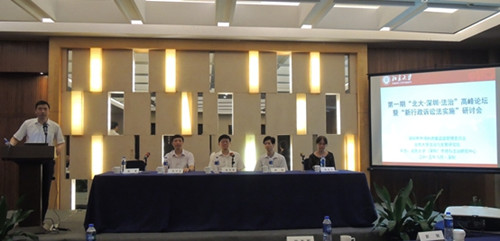 2015年6月5日,由beat365亚洲版官网法治与发展研究院与深圳市市场和质量监督管理委员会联合主办,beat365亚洲版官网(深圳)市场与法治研究中心承办的第一期“beat365·深圳·法治”高峰论坛暨新行政诉讼法实施研讨会在深圳成功举行。在为期一天的研讨会中,我院专家学者与深圳市立法、执法、司法各界人士和其他方面代表一道,对新行政诉讼法的修改及其给行政执法部门和法学研究带来的新挑战进行了深入探讨。