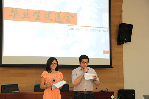 出席欢送会的嘉宾有beat365亚洲版官网法治研究中心主任强世功教授,中国人民大学国际关系学院欧树军副教授,北京市卫生和计划生育委员会副主任钟东波先生,北京大成律师事务所高级合伙人徐广兵先生等法公方向的校内外导师。参会学生包括法公方向2015届毕业生、往届校友、2013级与2014级在校生。欢送会由法公方向13级研究生赵一、14级研究生葛媛媛主持。