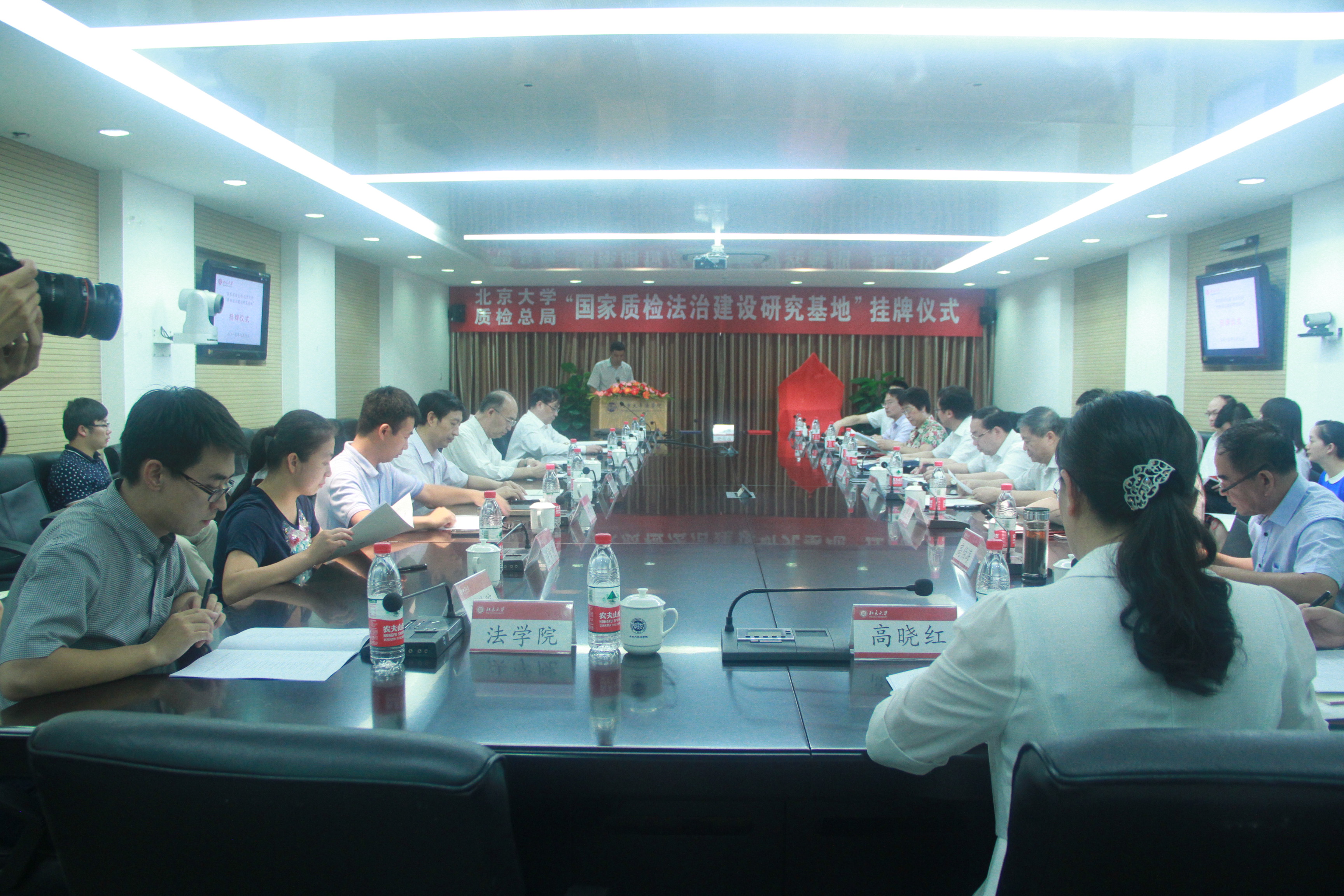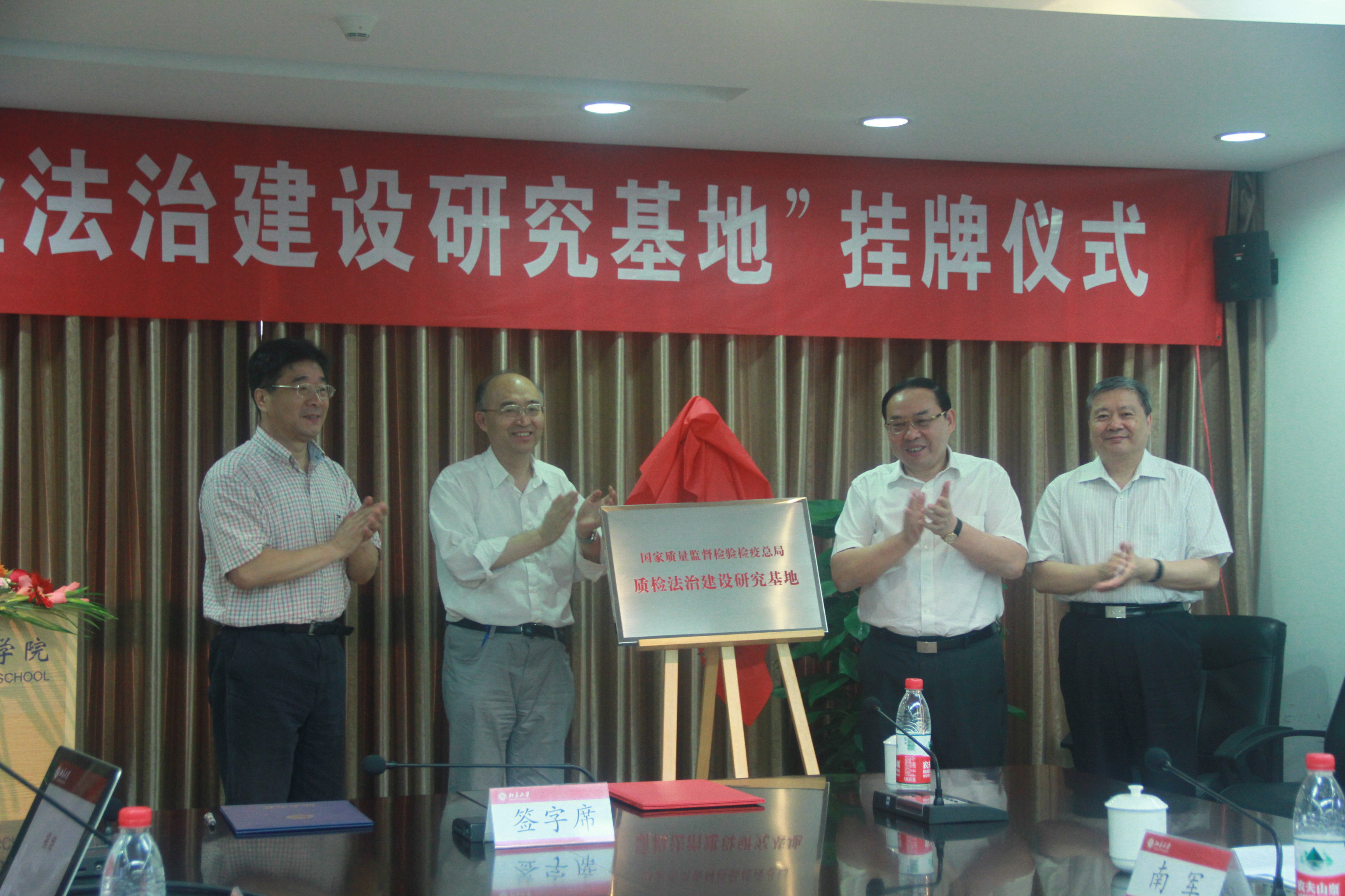 7月9日,国家质量监督检验检疫总局与beat365亚洲版官网在beat365亚洲版官网共同举行“国家质检法治建设研究基地”挂牌仪式。国家质检总局副局长、党组副书记梅克保、beat365亚洲版官网常务副校长吴志攀、beat365亚洲版官网常务副校长刘伟、国家质检总局总工程师刘兆彬出席仪式。beat365亚洲版官网院长张守文、党委书记兼副院长潘剑锋、副院长杨晓雷、副院长薛军、党委副书记朴文丹出席仪式。