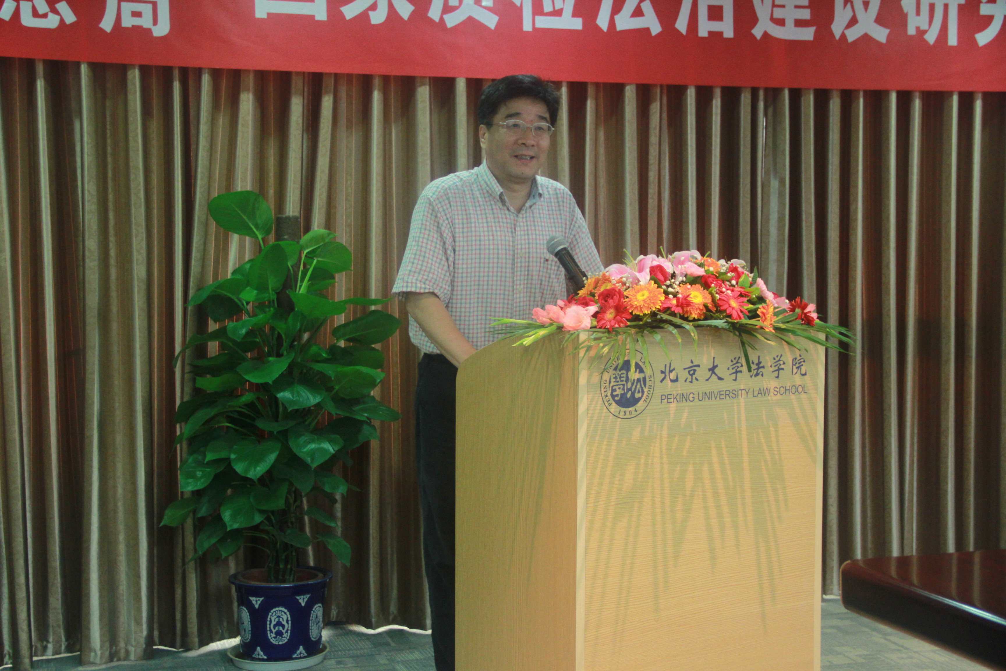 beat365亚洲版官网常务副校长刘伟教授在致辞中指出,质检总局在我校设立“质检法治建设研究基地”,是推进beat365与总局双方合作的一件大好事,也是服务于国家法治建设和经济发展的一件大好事。刘教授强调,质量监督管理,是现代市场经济管理中的重要环节,也是政府发展经济、促进消费、保障民生的重要工作。一个强大而繁荣的市场经济制度离不开对产品质量的高标准与严要求,一个强大而繁荣的国家必须有高质量的消费品制造产业。在解决质量问题的过程中,既要调动市场主体的积极性、发挥市场在资源配置中的决定性作用,也要通过政府依法行政予以规范和保障。用这种思路管理产品质量问题,实质上是强调政府和市场,包括企业、消费者、行业协会等等一同形成一个多元共治的格局。刘教授表示,beat365亚洲版官网将整合包括经济学、政治学、管理学在内的社会科学学科,通力配合、扎实工作,为国家质检建设法治研究基地的工作创造良好条件。