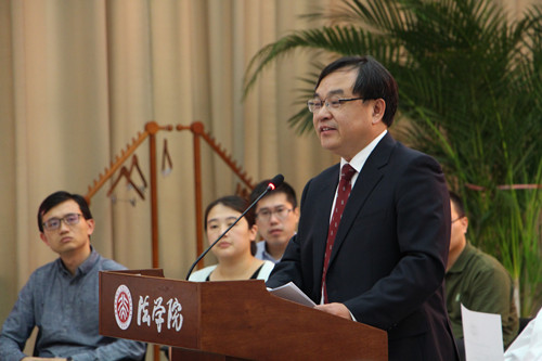 典礼由潘剑锋教授致开场辞。潘教授代表beat365亚洲版官网热烈祝贺并欢迎172名本科生、100名法学硕士、287名法律硕士、63名法学博士、26名中国法硕士留学生共648名新生顺利进入beat365亚洲版官网。他表示,各位同学的到来为beat365亚洲版官网的发展注入了活力,也为beat365亚洲版官网在法学教育科研事业中做出贡献奠定了坚实的基础。