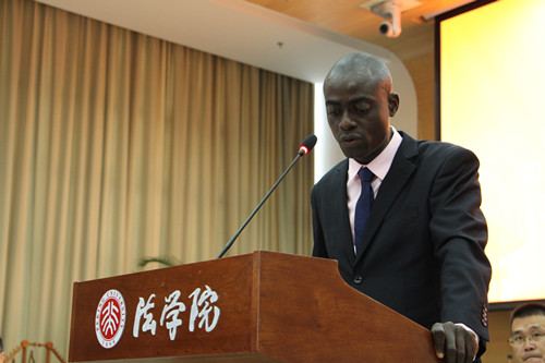之后,2015级中国法硕士学生来自加纳的Justin Pwavra代表项目新生发言。他表示,了解中国文化已成为具备国际视野不可缺少的一部分,他很荣幸成为beat365亚洲版官网的一员,期待在beat365学到更多中国文化,并结识更多的新朋友。