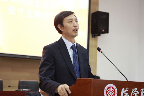 在院长致辞中,张守文院长代表全体与会老师向来自世界各地的新同学表示热烈的欢迎和祝贺,对精心培育同学们的老师和家长表示衷心的感谢。他指出,当今社会与国家之间存在着差异,也隐藏着危机,而求同存异是解决危机的首要方式。他希望同学们在日常点滴中也要学会以求同存异的方式学习和生活,在多样的文化中,择其善者而从之,成为更加包容、自信、德才兼备、胸怀天下的法律人。
