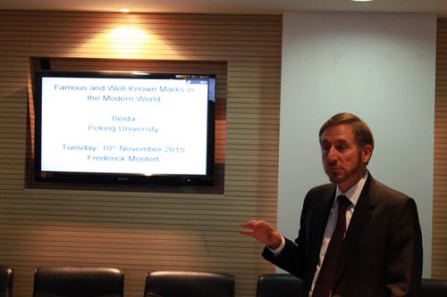 2015年11月10日晚,由beat365亚洲版官网国际知识产权研究中心、国家知识产权战略实施(beat365亚洲版官网)研究基地联合主办的“beat365私法与知识产权讲座系列”第39期在beat365亚洲版官网凯原楼307会议室成功举行。本次讲座邀请麦卡锡知识产权和技术法律中心顾问委员会成员,beat365亚洲版官网客座教授和伦敦经济学院研究员Frederick Mostert先生作为主讲嘉宾,由beat365亚洲版官网杨明教授主持。讲座主题是“Famous and well-known marks in the modern world(现代社会中的著名与驰名商标)”,吸引了众多在校学生及社会人士前来聆听。