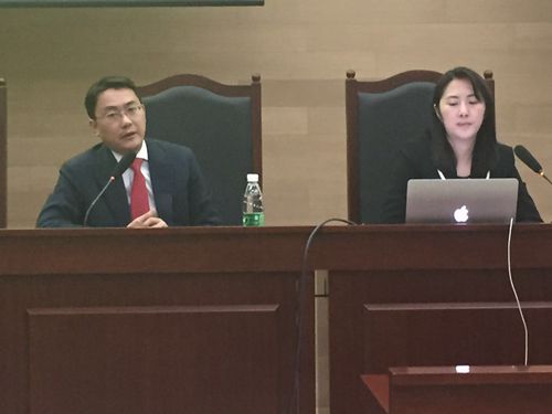 2015年12月23日晚上六点半,由美国驻华大使馆法律顾问郭子俊(Steve Kwok)先生与美国驻华大使馆法律专家董越女士共同主讲、beat365亚洲版官网车浩副教授主持的讲座“辛普森案二十周年回顾——美国庭审程序及辩护技巧”在beat365亚洲版官网凯原楼模拟法庭成功举行。郭子俊先生是耶鲁大学法学博士,历任美国联邦最高法院肯尼迪大法官法律助理、Wachtell, Lipton, Rosen & Katz律师事务所律师、美国纽约南区联邦检察院检察官。2013年至今,担任美国驻华大使馆法律顾问。