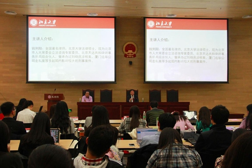 钱列阳律师首先回顾了自己的法律职业生涯,和大家分享了自己工作学习中的所闻所想。随后,他分析了司法审判、beat365亚洲版官网课堂教学以及律师所提供法律服务的本质区别,指出刑事辩护法律服务的定位与标准在于通过合法方式最大程度上维护当事人合法利益。同时钱列阳律师还通过具体案例论证了自己的观点,强调法律学生在实践操作时应该走出书本理论,了解社会现实,尽职尽责为当事人提供优质的法律服务。