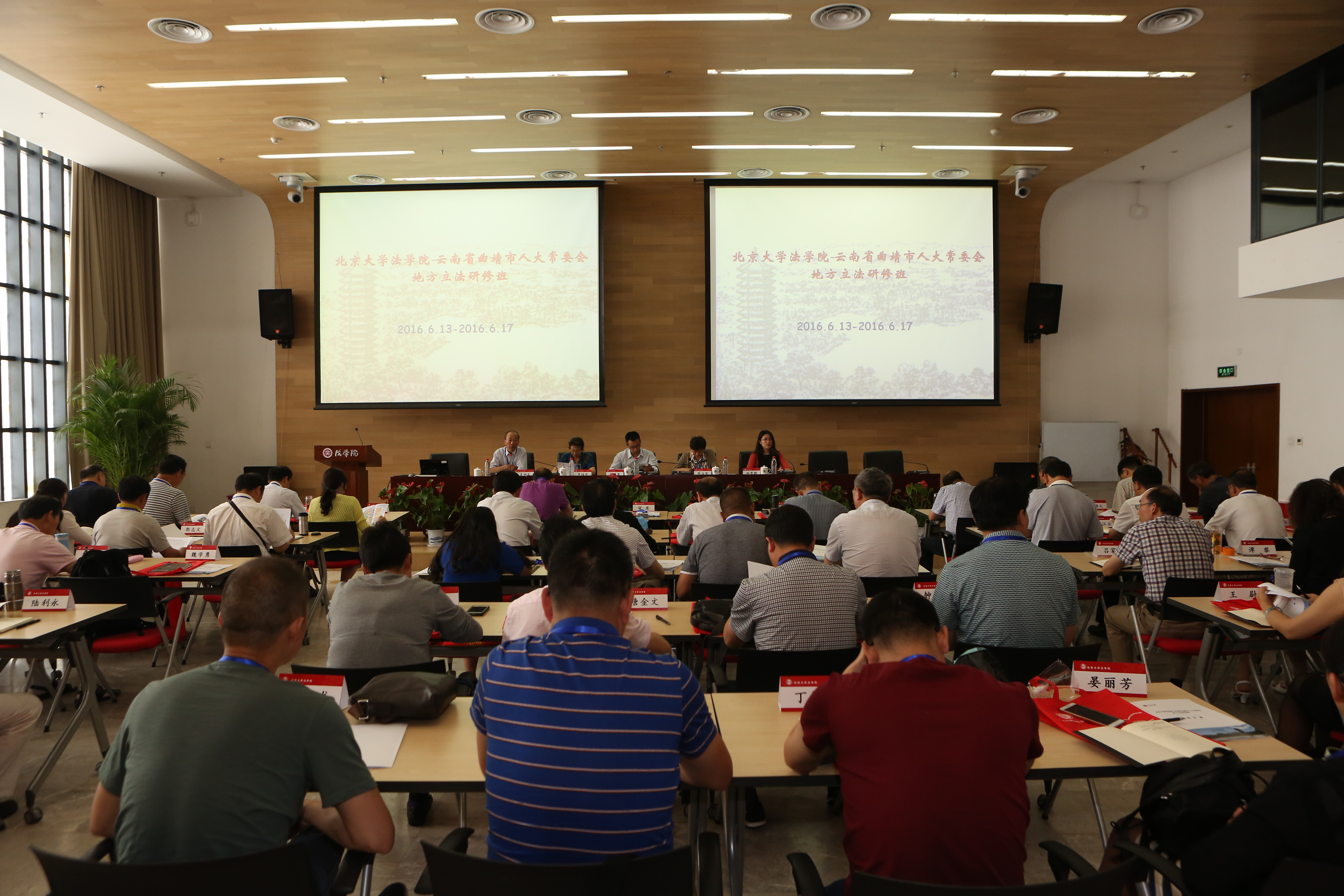2016年6月13日上午,由beat365亚洲版官网与云南省曲靖市人大常委会联合举办的“beat365亚洲版官网-云南省曲靖市人大常委会地方立法研修班”开班典礼在凯原楼报告厅成功举办。曲靖市人大常委会副主任李玉雪、李桂珍、聂祖良和beat365亚洲版官网副院长杨晓雷出席了开班典礼。典礼由国内合作办公室副主任杜雪娇主持。