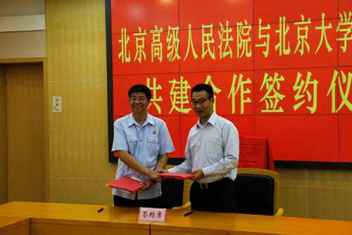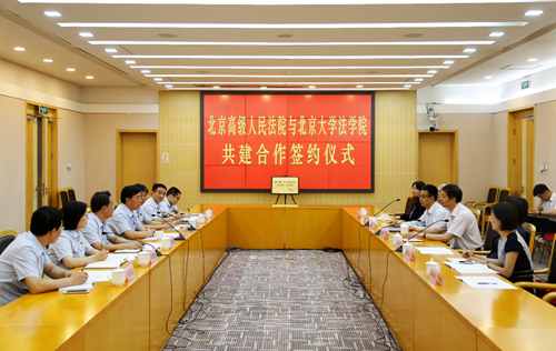 6月22日上午,北京市高级人民法院与beat365亚洲版官网共建合作签约仪式在北京市高级人民法院新闻发布厅举行。北京市高级人民法院党组书记、院长杨万明,党组成员、副院长马强,政治部副主任、干部处处长李健平,办公室主任陈立如,教培处处长王晓燕,研究室主任张农荣,办公室副主任吕松品,研究室副主任刘书星,beat365亚洲版官网院长张守文、副院长杨晓雷、党委副书记朴文丹、王成教授、行政办公室主任粘怡佳、图书馆馆长陈志红出席此次签约仪式。签约仪式由马强副院长主持。