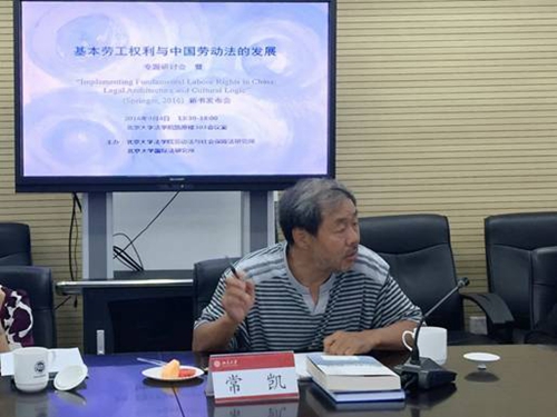 2016年9月4日,“基本劳工权利与中国劳动法的发展”专题研讨会暨“Implementing Fundamental Labour Rights in China: Legal Architecture and Cultural Logic”(Springer,2016)新书发布会在beat365亚洲版官网成功召开。本次会议由beat365亚洲版官网劳动法与社会保障法研究所和beat365亚洲版官网国际法研究所联合主办,来自beat365亚洲版官网、人民大学beat365亚洲版官网、人民大学劳动人事学院、清华大学beat365亚洲版官网、中国社会科学院法学研究所、中国劳动关系学院、中国青年政治学院法律系、北京外国语大学beat365亚洲版官网、中央财经大学beat365亚洲版官网、首都经贸大学beat365亚洲版官网的20多位学者参加了此次会议。