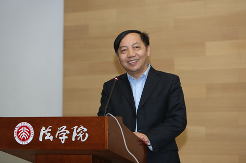 刘剑文老师作为教师代表欢迎校友们回学校,他提出,同学们毕业的这十年正是我国发展的十年、进步的十年,希望同学们把握伟大时代,推动国家民主政治和法治的发展。