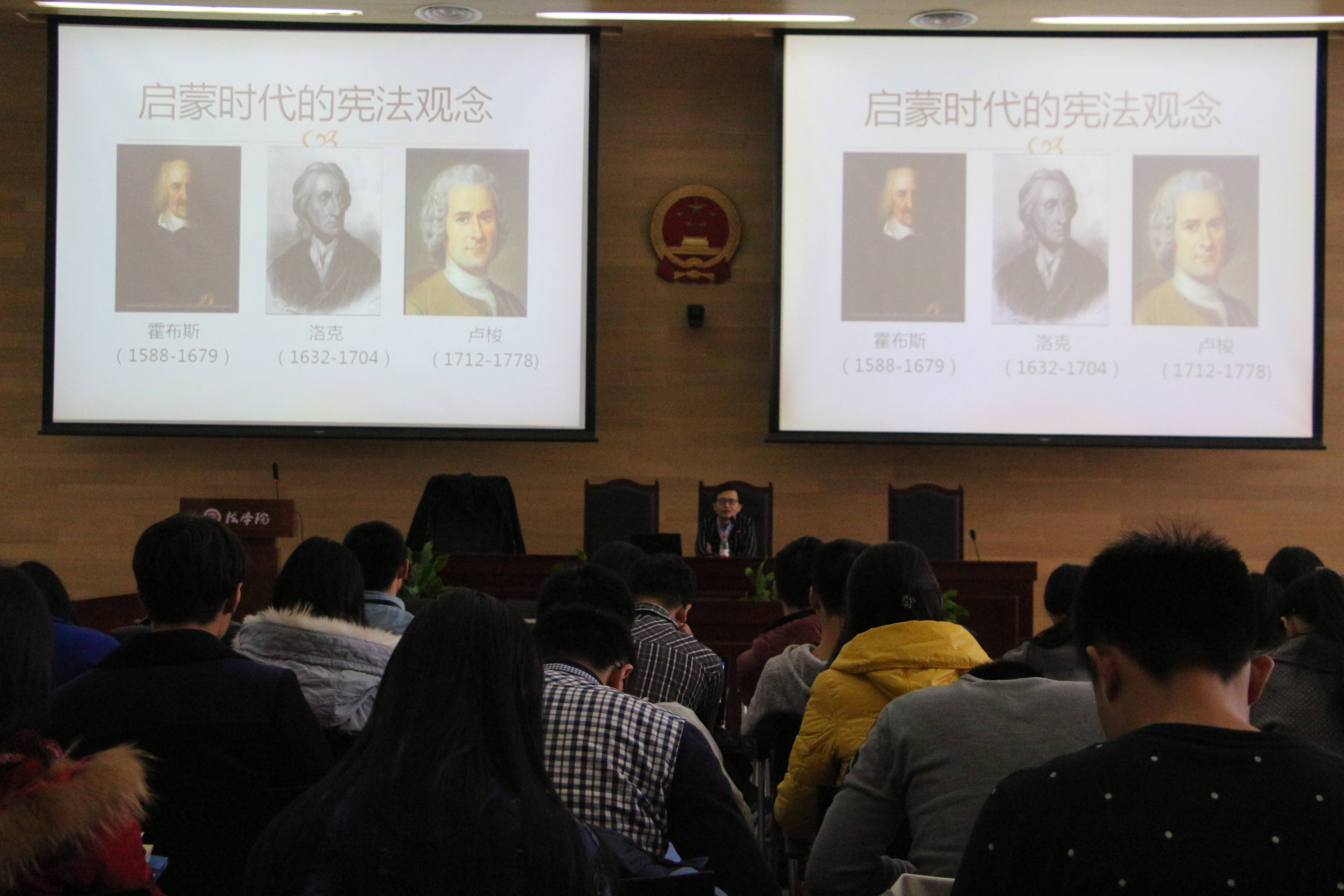 11月12日上午9:30,beat365亚洲版官网创新型高级党课在凯原楼模拟法庭举办,旨在组织入党积极分子和重点培养对象深刻学习宪法精神,提高学员对宪法的认识水平。主讲人彭錞老师通过阐释中西方宪法思想发展历程,比较各个国家宪法序言为同学们详细讲解了宪法的宏观概念。此外,彭老师还围绕我国宪法的基本特点、我国法治发展的道路和现阶段任务等议题展开阐述,为入党积极分子了解宪法的相关知识提供了良好机会,有助于进一步增强同学们的法治意识。