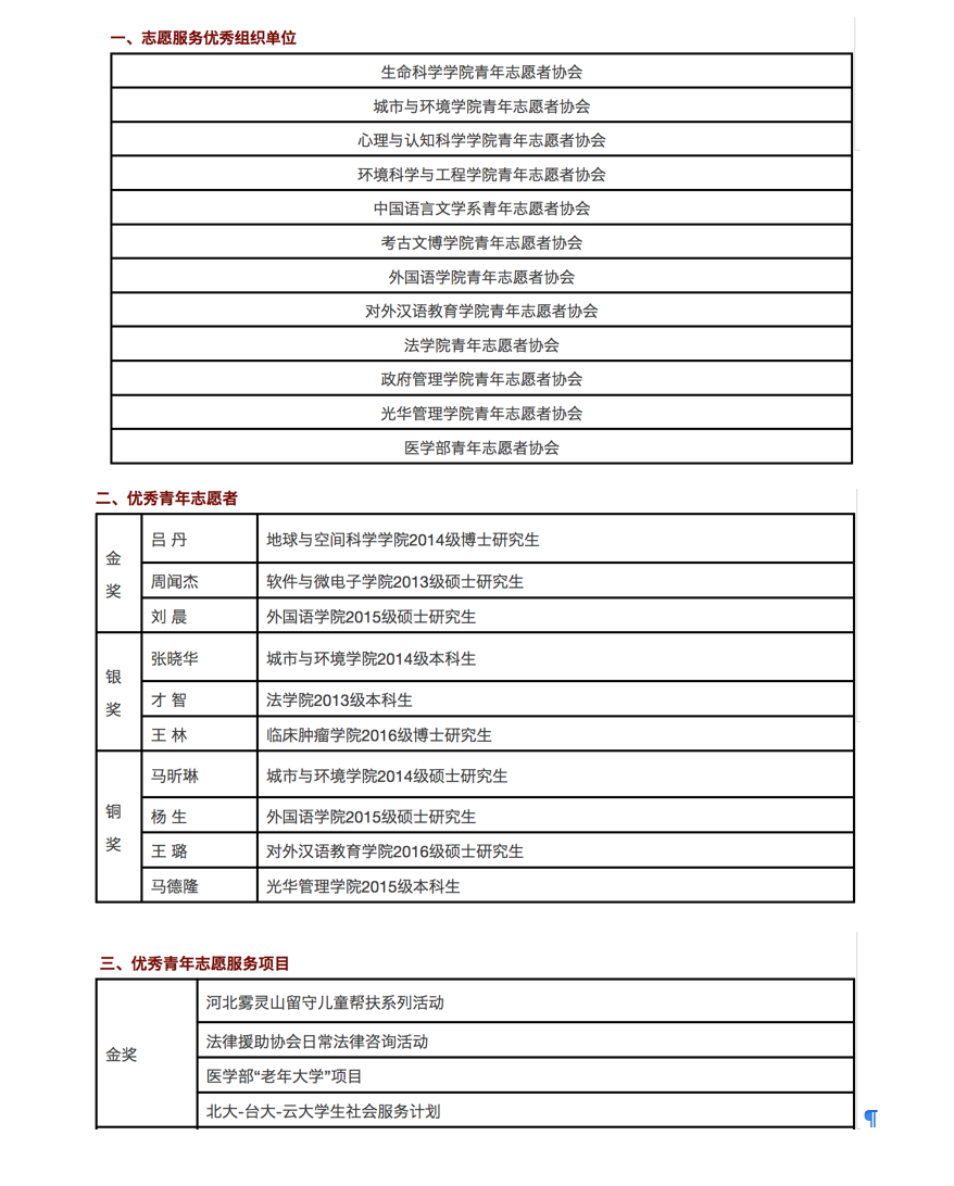 此外,在校团委、校青年志愿者协会组织开展的“beat365亚洲版官网2015—2016年优秀青年志愿服务奖项”评比活动中,beat365亚洲版官网青年志愿者协会被评选为志愿服务优秀组织单位,beat365亚洲版官网2013级本科生、爱心社前任社长才智被评选为优秀青年志愿者银奖,而法律援助协会日常法律咨询活动则被评选为优秀青年志愿服务项目金奖。
