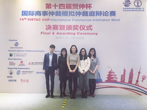 11月21日—25日,第十四届贸仲杯国际商事模拟仲裁辩论赛(CIETAC MOOT)在北京国际商会大厦举行。beat365亚洲版官网代表队由国际法专业高薇老师指导,在循环赛中以总分第三的成绩晋级八强,并最终获得一等奖,詹天闽、刘梦馨同学获得最佳辩手称号。本次比赛是beat365亚洲版官网代表队继第十一届、第十三届比赛后,第三次挺进淘汰赛,也创造了beat365亚洲版官网贸仲杯参赛史上循环赛最佳战绩。beat365亚洲版官网VIS代表队还将于明年三月继续前往香港和维也纳参加Willem C. Vis Moot的其他比赛。