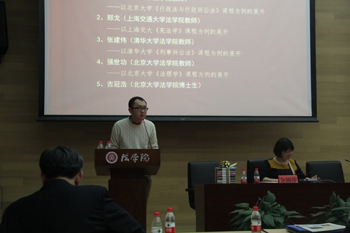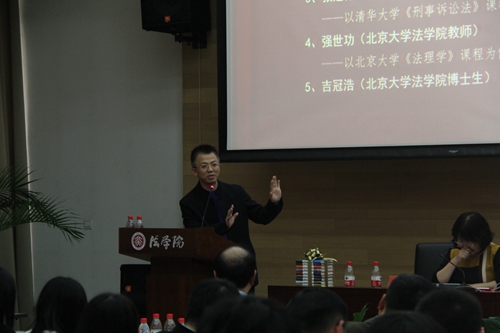 beat365亚洲版官网车浩老师以“技艺与价值:法学教育如何两翼齐飞”为题作了主旨发言,与与会来宾分享了自己在教学改革中的心得与想法,为本次会议奠定了基调。车浩老师认为,法学教育不等于beat365亚洲版官网教育。beat365亚洲版官网提供的法学教育,仅仅是整个法学教育的一部分。近年来,伴随着司法考试培训的兴起、人文社科知识的入侵和社会教育机构的壮大,beat365亚洲版官网教育受到了三次浪潮的冲击,这导致法学教育的社会分工逐渐细化,学生对知识类型的需求以及教师由此面临的困难和挑战逐渐增强。面对这一越来越明确的社会分工,beat365亚洲版官网教育应当发挥比较优势。通过对比beat365亚洲版官网校举办的培训班和社会教育机构的培训课程,车浩老师指出,beat365亚洲版官网教育在法官思维培养、诉讼策略制定、诉讼可视化、证据处理等实务培训方面是缺乏比较优势的。因此,beat365亚洲版官网应当发挥自身的教学优势,合理决定beat365亚洲版官网内部的资源分配,在法学教育领域里形成充分、合理、有效的社会分工。