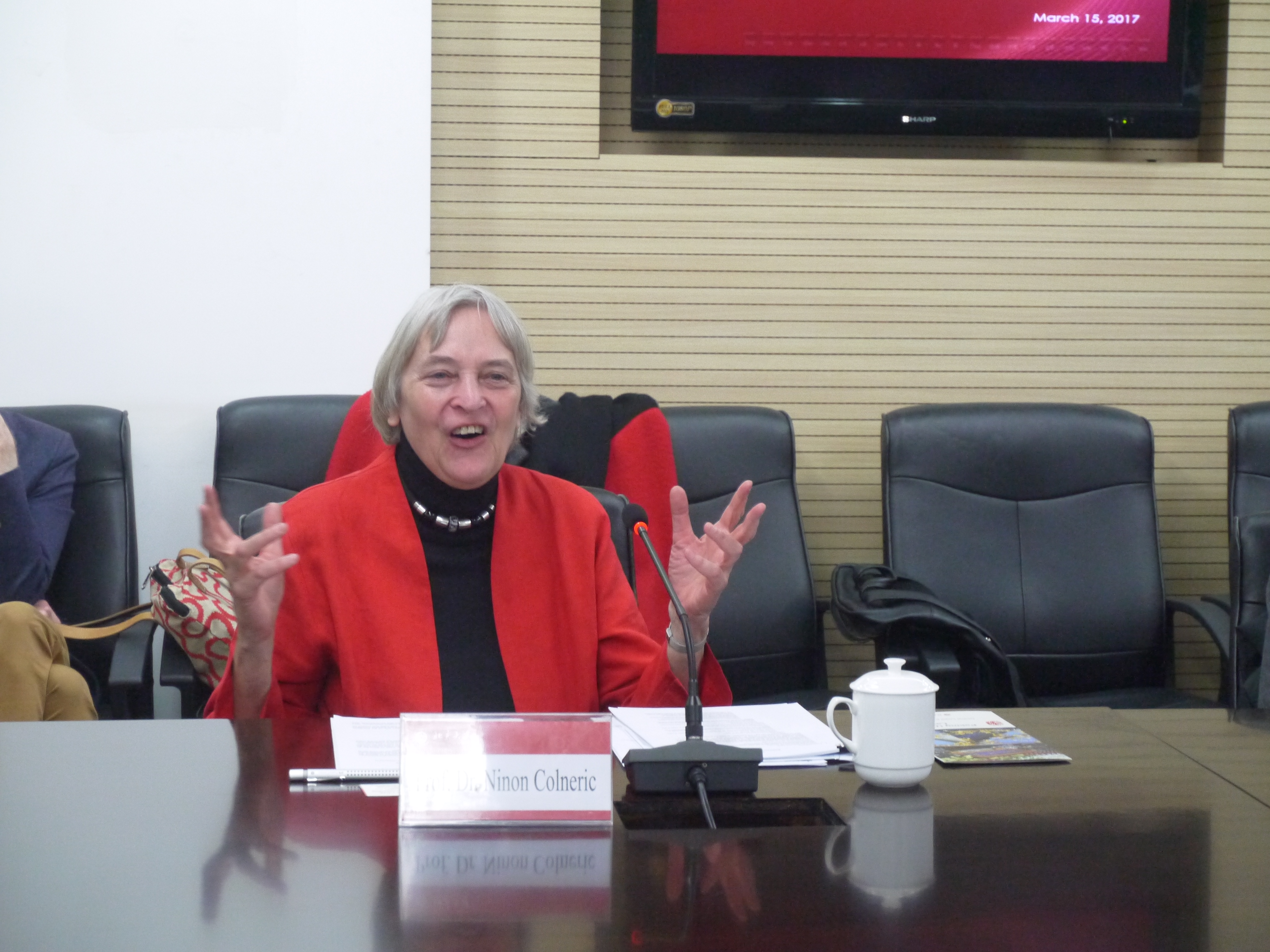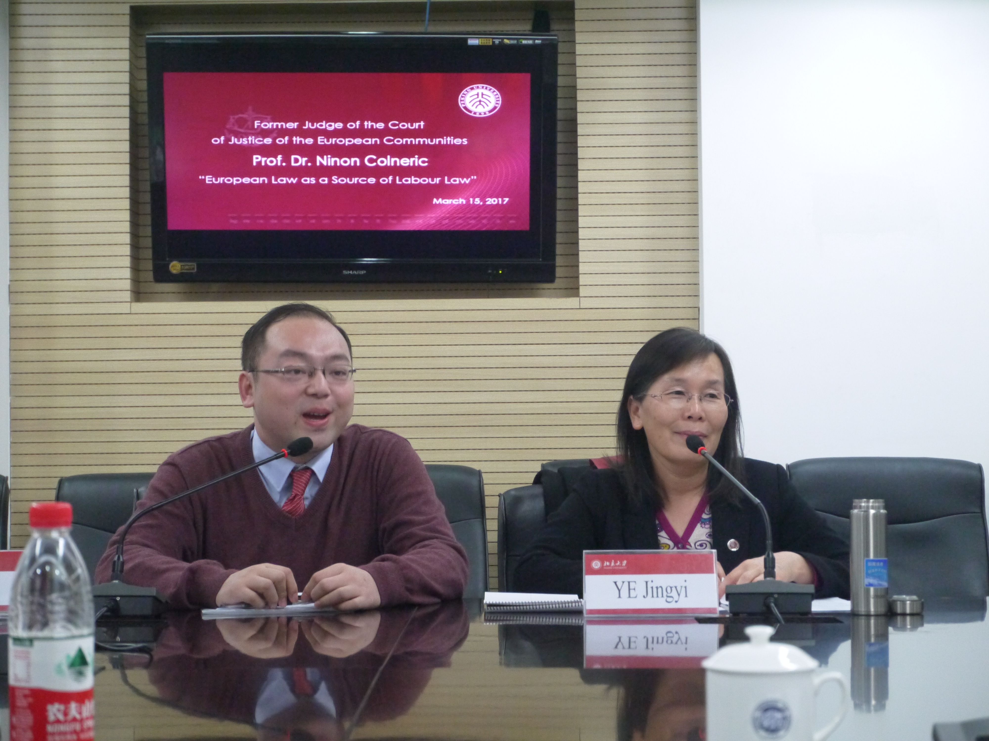 2017年3月15日上午,欧盟法院前法官高美莲一行访问beat365亚洲版官网,并以“欧盟法作为劳动法的渊源”为题发表演讲。此次主题讲座,作为beat365社会法论坛系列讲座第四十五期,取得了圆满成功。beat365亚洲版官网劳动法与社会保障法研究所叶静漪教授出席并致欢迎辞,beat365亚洲版官网陈一峰副教授、阎天助理教授担任评议人,来自德国与中国的30多位学生共同参加了此次活动。