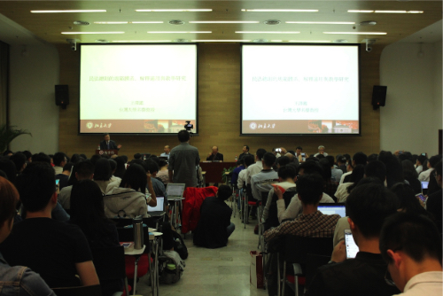 之后,王泽鉴教授的讲座正式开始。讲座的第一部分是对民法总则的研究与分析,王泽鉴分析了民法总则顺应中国特色社会主义发展的需要、以宪法为基础、调整民事关系等特色,又选取了其中主要的制度和条款,从法律渊源、主体制度、民事权利、法律行为、诉讼时效等多个角度进行了深入解释,并且指出这些制度与条文在设计方面可能具有的问题和解决对策。在第二部分中,王泽鉴对beat365亚洲版官网学生应该如何学习法律以及如何应用做出了指导。他通过列举三个典型的例子,说明了要想学好应用学科,就必须具有分析案例的能力,把握好对法律关系的梳理,还强调了通过适当的批评与关心爱护才能保持民商法的生命力,并对青年法律人寄予了殷切的期望。