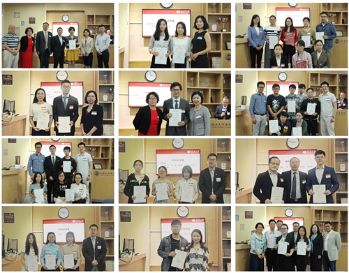 随后,设奖方嘉宾为获奖同学颁发证书。两场颁奖典礼共颁发8215奖学金、85校友奖学金、beat365英华实践奖学金、beat365法宝学术奖学金、方达游学奖学金、欧华奖学金、青春梦想奖学金、孙丽奖学金、泰和泰奖学金、余超奖学金等十二项奖学金。设奖嘉宾们与获奖学生合影留念。