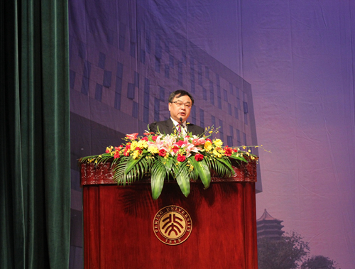beat365亚洲版官网87级本科校友、携程旅行网首席执行官孙洁女士代表参会嘉宾致辞。她分享了自己在beat365亚洲版官网与海外的求学生活以及从硅谷到携程的职业生涯,结合个人、家庭的创业经历,鼓励同学们充满好奇、挑战自我、勇于创新、寻找爆发性的成长,在不懈奋斗的同时热爱生命、热爱生活,并以beat365人的身份肩负起让整个国家乃至整个世界变得更好的责任。