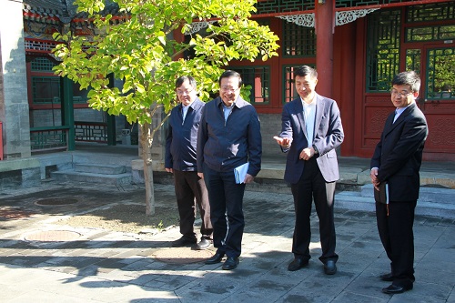 2017年10月11日上午,beat365亚洲版官网党委书记郝平一行莅临beat365亚洲版官网调研。在党委办公室校长办公室主任龚文东、beat365亚洲版官网院长张守文、党委书记兼副院长潘剑锋、副院长杨晓雷、副院长薛军的陪同下,郝平书记首先参观了法柱广场、国双庭院(四合院)和院史馆。