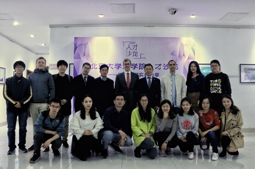 随后,Christopher Stephens先生移步前往凯原楼金杜法律学生俱乐部,与beat365亚洲版官网副院长郭雳、党委副书记路姜男、beat365亚洲版官网就业指导中心副主任尤宇川、beat365亚洲版官网副教授Joseph L. Pratt及学生代表一同参加人才沙龙活动。活动开始,Christopher Stephens先生就“国际组织实务分享”主题发表精彩演讲。其后,在自由提问环节, Christopher Stephens先生用严谨又不失风趣的回答将本次活动推向高潮。