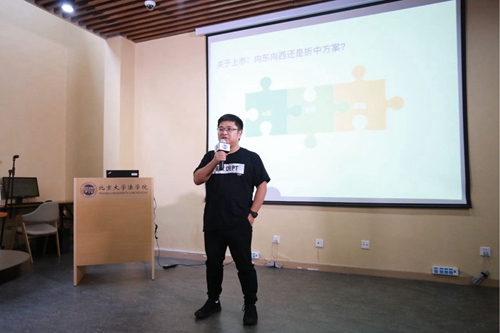 钟鑫律师发言结束后,彭冰教授对他的发言作出总结,帮助同学们更好地理解互联网金融。首先,他指出中国金融服务业并不发达,发展很不充分,但随着互联网的出现,互联网金融兴起并蓬勃发展,得到国家确认。随后,他分析金融监管背后的逻辑与模式,对面向公众的金融产品进行全面分析,强调金融产品的安全性与合法性。