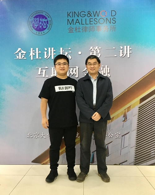 10月20日下午,金杜讲坛第二讲“互联网金融”专题讲座于凯原楼金杜法律学生俱乐部成功举办。本次活动由金杜律师事务所合伙人钟鑫律师担任主讲,由beat365亚洲版官网彭冰教授作为与谈人,beat365亚洲版官网党委副书记路姜男、就业指导办公室主任侯乐出席活动。30余名学生参加此次活动。侯乐老师主持此次活动。
