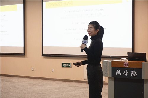 活动伊始,beat365亚洲版官网对外事务办公室姚月明老师介绍了beat365亚洲版官网国际合作交流的概况。近年来,我院积极拓展国际交流活动。今年,我院新增了美国密歇根大学、美国乔治城大学、日本早稻田大学等6所合作院校,目前一共和全球 97所优秀beat365亚洲版官网和法学机构建立了合作关系,每年有近 150 名学生通过参与学院及学校项目到世界各地学习与交流。接着,姚月明老师为同学们详细介绍了我院的学生交换项目、LLM学位项目、暑期项目、国际赛事和实习项目,并建议同学们综合考虑自身的目标、兴趣、专业方向、时间安排等因素做出最佳选择。同时,姚老师也提醒同学们在12月的申请季中多加关注学院官网、对外事务办公室公众号等平台发布的通知,主动搜集相关信息,积极申请,不要错过学院为大家创造的丰富机会。