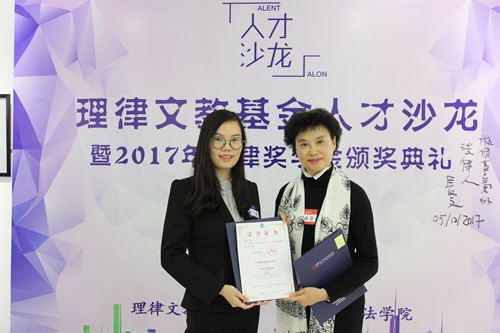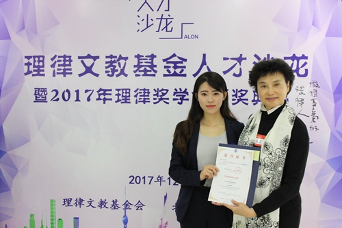 随后,理律奖学金设奖方嘉宾李永芬执行长为本年度获奖学生颁奖。获奖学生依次发表获奖感言,表达了自己建设法治社会和追求公平正义的决心,并对理律文教基金会的鼓励与支持表示感谢。