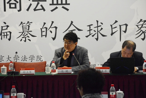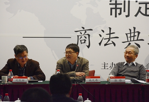 随后,第一单元的各位专家学者进行了主旨发言。南京大学beat365亚洲版官网范健教授以“中国商法典制定的前瞻性研究”为题,从为什么要制定商法典、商法的历史发展趋势、当代中国商法面临的问题、中国商法典的路径等几个方面对我国商法典的制定进行了前瞻性的分析。最高人民法院研究室副主任郭锋教授以“由兴盛到衰微:国外商法典的成长之路及对我国的镜鉴”为题,从历史的角度探析国外商法典的发展历程,提出搞商法典最好先看民法典的效果,可以先搞商事通则。beat365亚洲版官网刘凯湘教授发表了题为“反对商法典的理由辩驳”的主旨发言,对“商法是民法的特别法因而不需要商法典”、“民商合一体制下不需要商法典”、“制定商法典已经是过时的做法、现在不需要商法典”等反对商法典的理由进行辩驳,并指出可以先制定商法通则,但最终还是要制定商法典。清华大学beat365亚洲版官网施天涛教授以“商事关系的重新发现与当今商法的使命”为题,认为当今商法应该将其主要精力从传统商事关系的调整转移到对金融商事关系的调整,并以此作为当今商法的基本定位。四川省社科院法学所周友苏研究员在与谈环节对上述几位学者的发言进行评议,并对国际上商法典“去法典化”问题进行了回应,提出现阶段不应制定无所不包、庞大的商法典,而是一部商事通则。