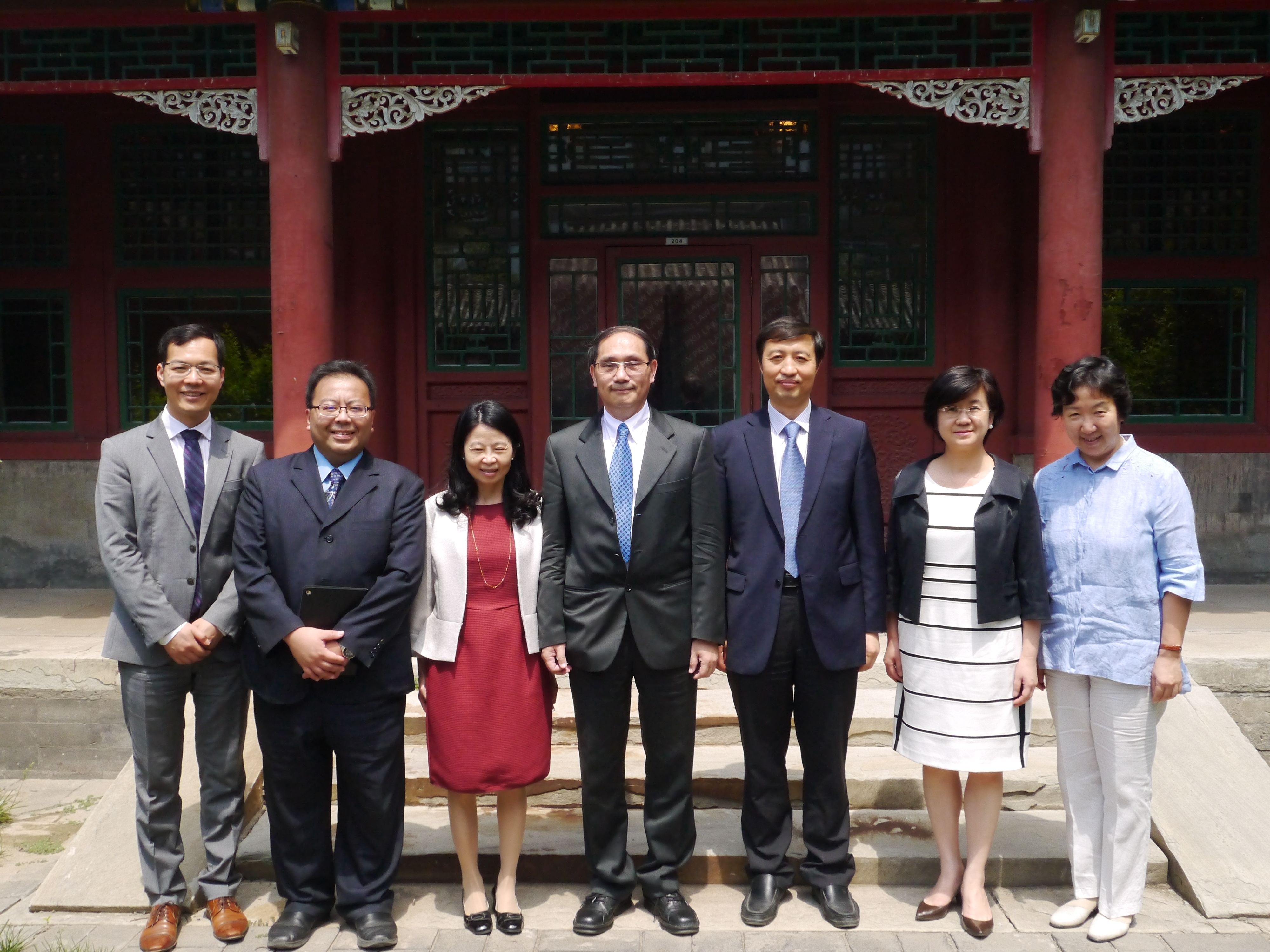 2018年5月25日上午,台beat365学学术副校长兼法律学院院长陈春生、法律学院法律学系系主任杜怡静、国际法研究中心主任王震宇、法律学院教授徐慧怡一行来访beat365亚洲版官网,beat365亚洲版官网院长张守文教授,宋英教授、陈一峰副教授,院长助理、对外事务办公室主任李媛媛老师在国双庭院热情接待了来宾,双方进行了亲切友好的会谈,并签署了两院合作交流协议和学生交换协议。
