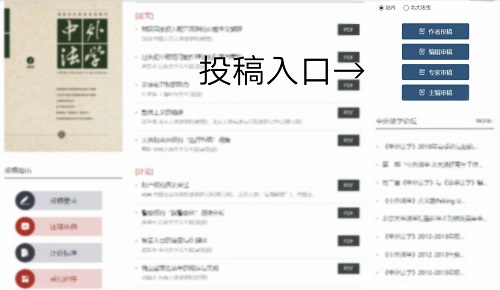学者投稿是刊物制作的发端。按照往常惯例,一般由投稿作者自行将稿件发送至编辑部官方邮箱,再由编辑部的工作人员进行稿件登记。每一旬都会进行一次稿件汇总,在对来稿进行分类后,工作人员将稿件分发给负责相应学术领域的责任编辑老师,审稿的时间限定在三个月之内。而随着主编和编辑部成员的更迭,这一机制发生了一些变化和调整。从今年五月份起,《中外法学》编辑部开始试运行网站投稿系统。在新的投稿制度下,有投稿意向的作者可以直接登陆《中外法学》的官方网站,从首页右侧的“作者投稿”窗口进入投稿界面,进行线上投稿,这一创新举措既方便了投稿人,又提高了编辑部整理、分类来稿的工作效率。