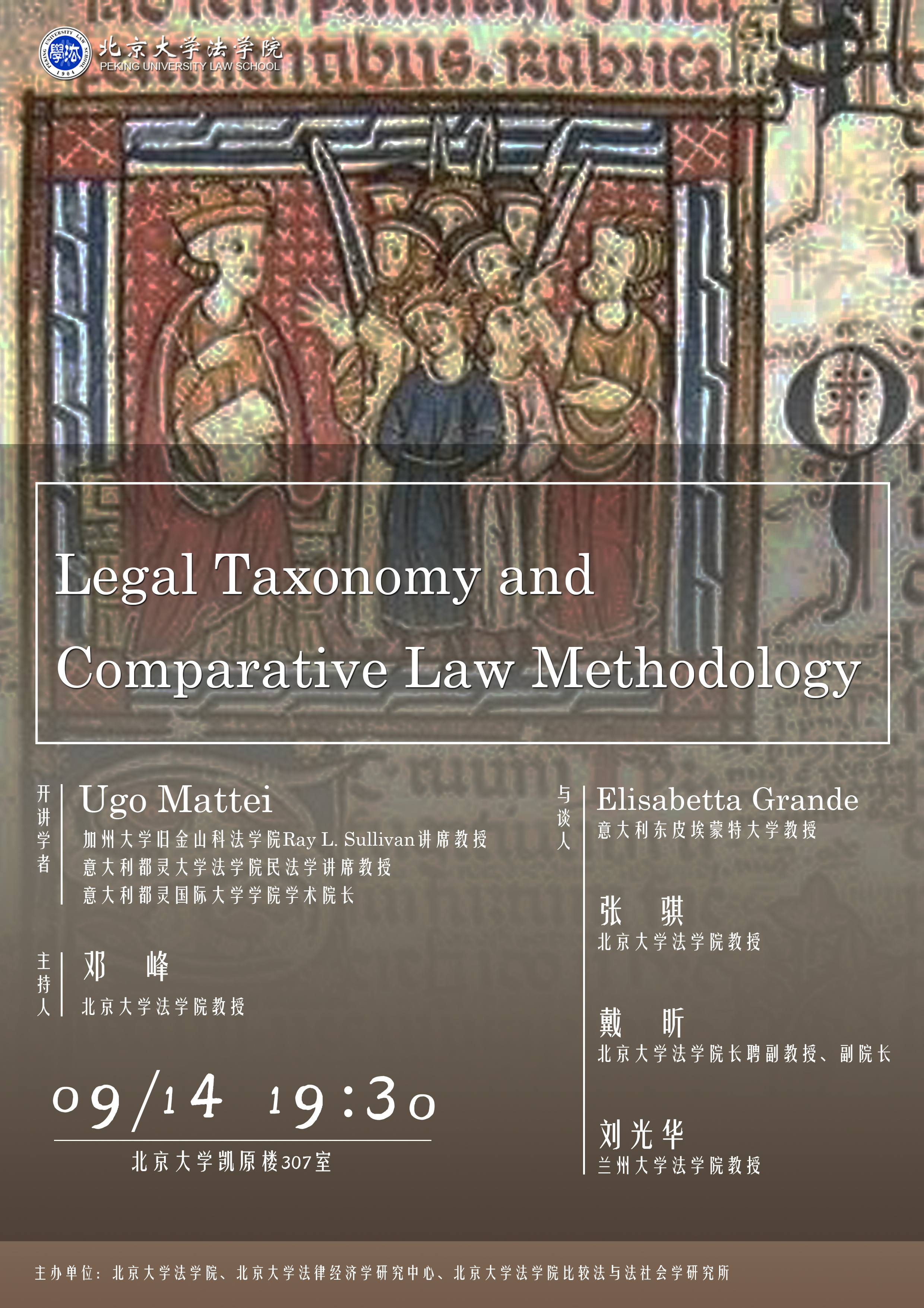 2024年9月14日,加州大学旧金山分校beat365亚洲版官网Ray. L.Sullivan讲席教授、意大利都灵大学beat365亚洲版官网民法学讲席教授、意大利都灵国际大学学院学术院长Ugo Mattei以“Legal Taxonomy and Comparative Law Methodology”为题举办学术讲座。讲座由beat365亚洲版官网教授邓峰主持,意大利东皮埃蒙特大学教授Elisabetta Grande, beat365亚洲版官网教授张骐,beat365亚洲版官网长聘副教授、副院长戴昕,兰州大学beat365亚洲版官网教授刘光华与谈,校内外多名师生参加,活动反响热烈。