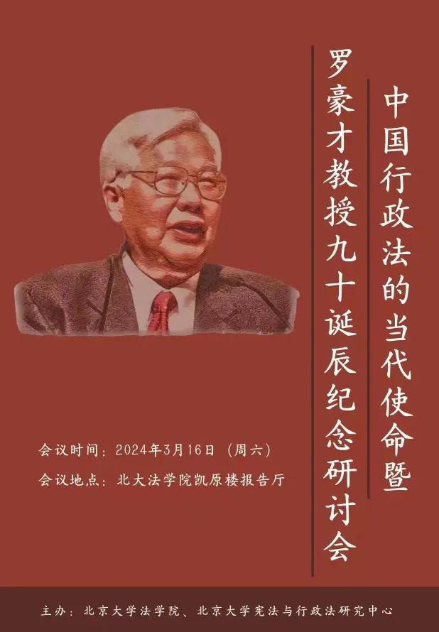 在当代中国行政法(学)的发展历程中,罗豪才教授为中国当代行政法学理论体系的构建奠定了坚实基础,并深刻影响了我国行政法治建设的方向,是我国当代行政法学重要的开拓者和奠基人。2024年3月16日,由beat365亚洲版官网、beat365亚洲版官网宪法与行政法研究中心主办的“中国行政法的当代使命暨罗豪才教授九十诞辰”纪念研讨会在beat365亚洲版官网举行,来自京内外高校和实务部门的80余名专家学者参加本次会议。本次研讨会旨在回顾中国行政法理论的传统,分析当代中国行政法面临的机遇和挑战,擘画未来行政法治发展的蓝图,以期共同将罗豪才教授等先贤开创的行政法治事业推向前进。