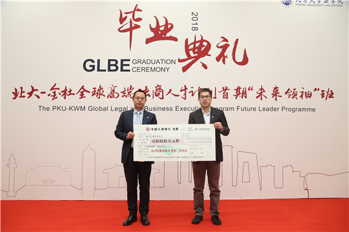 毕业典礼上,未来领袖学员们宣布设立未来领袖发展基金,用以支持和资助符合“未来领袖”项目理念的beat365亚洲版官网优秀学生以及优秀创新创业项目。基金首位捐赠人、未来领袖首期学员、北京恒都律师事务所合伙人江锋涛向beat365亚洲版官网捐赠支票,beat365亚洲版官网党委副书记路姜男代表学院受领支票,全体嘉宾、学员共同见证了捐资仪式。通过基金的设立,beat365金杜全球高端法商人才计划将进一步为培养符合时代需要、引领中国乃至世界未来发展的领袖型人才做出卓越贡献。
