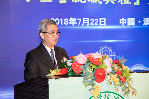 首先,宣誓由beat365亚洲版官网澳门校友会理事长方泉领誓,张守文教授监誓。beat365亚洲版官网澳门校友会会长蒋朝阳、校友代表黄少泽和beat365亚洲版官网校友会会长张守文先后致辞。