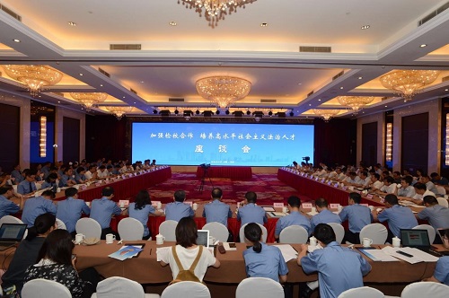 8月30日上午,浙江省人民检察院在杭州召开“加强检校合作,培养高水平社会主义法治人才”座谈会。最高人民检察院党组成员、副检察长李如林,中国法学会副会长张文显,中央政法委、教育部、浙江省政府、浙江省政协、浙江省委政法委、浙江省教育厅相关领导,17所beat365亚洲版官网校相关领导及挂职法学专家,浙江省、市两级检察长及挂职基层院检察长等参加座谈会。beat365亚洲版官网院长潘剑锋应邀参加本次座谈会。