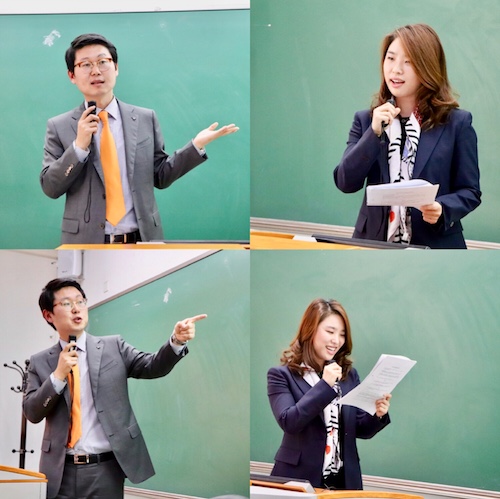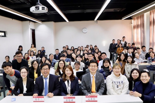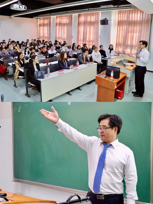 2018年10月30日下午,韩国驻中国大使馆郑孝三法律参赞、韩国世宗律师事务所元重在律师以及韩国广场律师事务所姜仑亚律师受邀来到《比较法律专题一》课堂与学生就韩国检察官制度、司法考试以及法律职业等主题进行了交流座谈。郑孝三法律参赞结合自身检察官经验,向同学们教授中韩检察制度比较、法务部职能、监察厅职能、检察官职责以及韩国刑事司法程序等主题。元重在律师与姜仑亚律师也结合工作生活与同学们分享了经验与心得。交流会上,同学们与嘉宾进行了深入的交流探讨,活动气氛热烈自由。