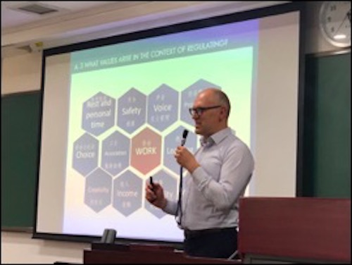 4. 2018年10月17日下午,beat365社会法论坛系列讲座第56期在理教302室举办。讲座题目为“国际论争中的民法与劳动法(Civil law and Labour Law: in the Ongoing International Debate)”,主讲人为夏荣(Sean Cooney)教授。夏荣教授是国际劳动法暨澳大利亚劳动法的知名专家,他担任澳大利亚墨尔本大学beat365亚洲版官网教授,毕业于墨尔本大学和哥伦比亚大学,精通英、法、德、汉等语言,曾任国际劳工组织劳动法与改革小组法律专家,为中国、印度等亚洲国家提供法律改革建议。多年研究中国劳动法,合著有《中国的法律与公平工作》(Law and Fair Work in China)一书,合编有《东亚的法律与劳动力市场规制》(Law and Labour Market Regulation in East Asia)等书。夏荣教授的讲座聚焦于四个问题:为什么需要劳动法?劳动法与民法(契约法)如何区分?这一区分的问题何在?以及解决这一问题的最新发展有哪些?为了回答上述问题,他对中国、澳大利亚等国立法及国际劳动标准进行了广泛的比较和讨论。我院葛云松教授莅临讲座现场,阎天助理教授担任讲座主持人。