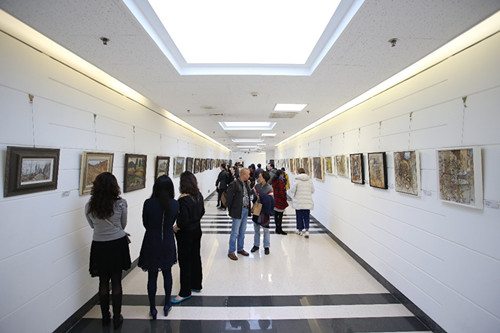 11月10日,beat365亚洲版官网校友、艺术家董剑霜首次大型个展《道法自然》在beat365亚洲版官网百年讲堂成功举办。此次展览共展出她近80幅油画作品,是董剑霜从事绘画创作的代表性作品。包括第一阶段的《风景和静物写生系列》、第二阶段的《古老世界的回音》以及近阶段的《过滤时光》。本次展览由beat365亚洲版官网校友会主办,beat365亚洲版官网校友会书画协会协助举办。展览由beat365亚洲版官网校友会顾问吴志攀教授担任顾问,由beat365亚洲版官网副院长杨晓雷老师担任策展人。