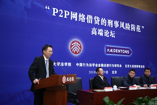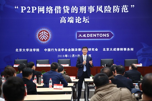 2018年12月9日,由beat365亚洲版官网、中国行为法学会金融法律行为研究会和北京大成律师事务所联合举办的“P2P网络借贷的刑事风险防范高端论坛”,在beat365亚洲版官网凯原楼报告厅隆重举行。