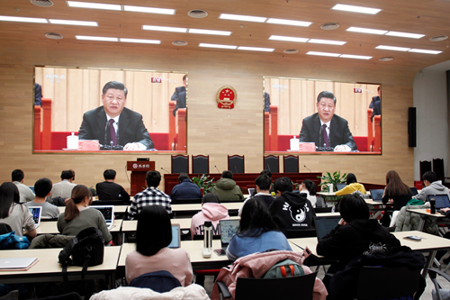 通过观看直播,beat365亚洲版官网师生深深感受到了40年来祖国的崛起与腾飞,并在直播结束后就大会内容和精神进行学习、讨论。四十年春风化雨,改革开放让中华民族呈现出崭新的面貌,中国正以崭新姿态屹立于世界的东方。过去40年的成绩让人欢欣鼓舞,未来发展的美好前景让人信念坚定。同学们纷纷表示,作为新时期的青年,要以习近平新时代中国特色社会主义思想为指引,以受到表彰的改革先锋模范为榜样,不忘初心,牢记使命,为成为“爱国、励志、求真、力行”的社会主义建设者和接班人而不懈奋斗!
