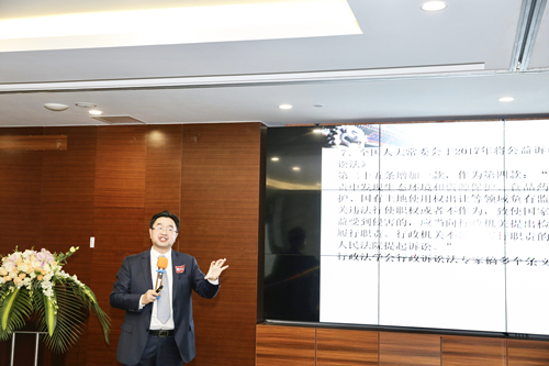 成立大会结束后进入“燕南法学论坛”阶段,由邹红艳校友主持。湛中乐教授围绕行政公益诉讼作为一项重要的制度创新和案例分析,跟大家一起分享了行政公益诉讼可能遇到的问题和挑战。陈端洪教授从宪法学的角度出发,对中国现有的制度和宪法施行状况进行了思考和探讨。两位教授的报告思想深刻,见解独特,内容精彩,掀起了会议的一次又一次高潮。